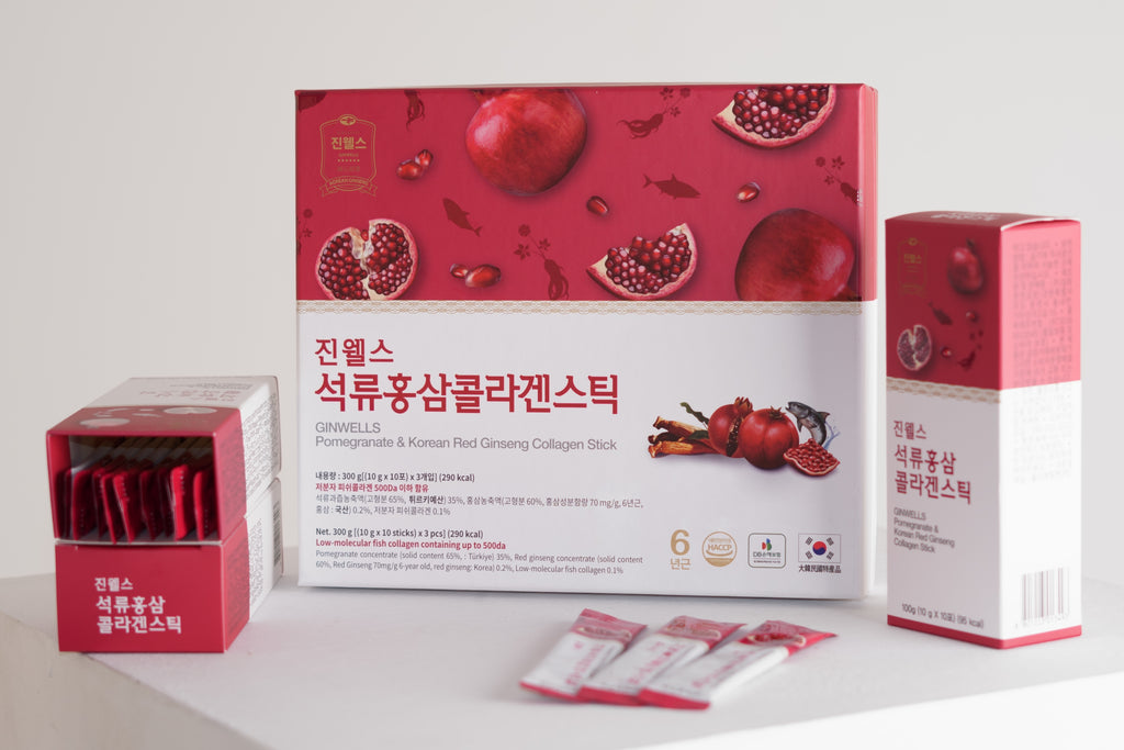 紅石榴濃縮液、高麗蔘、魚膠原蛋白、純淨水