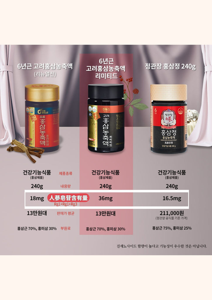 特點:紅蔘濃縮液LIMITED 人蔘皂苷含有量超高 No1 !