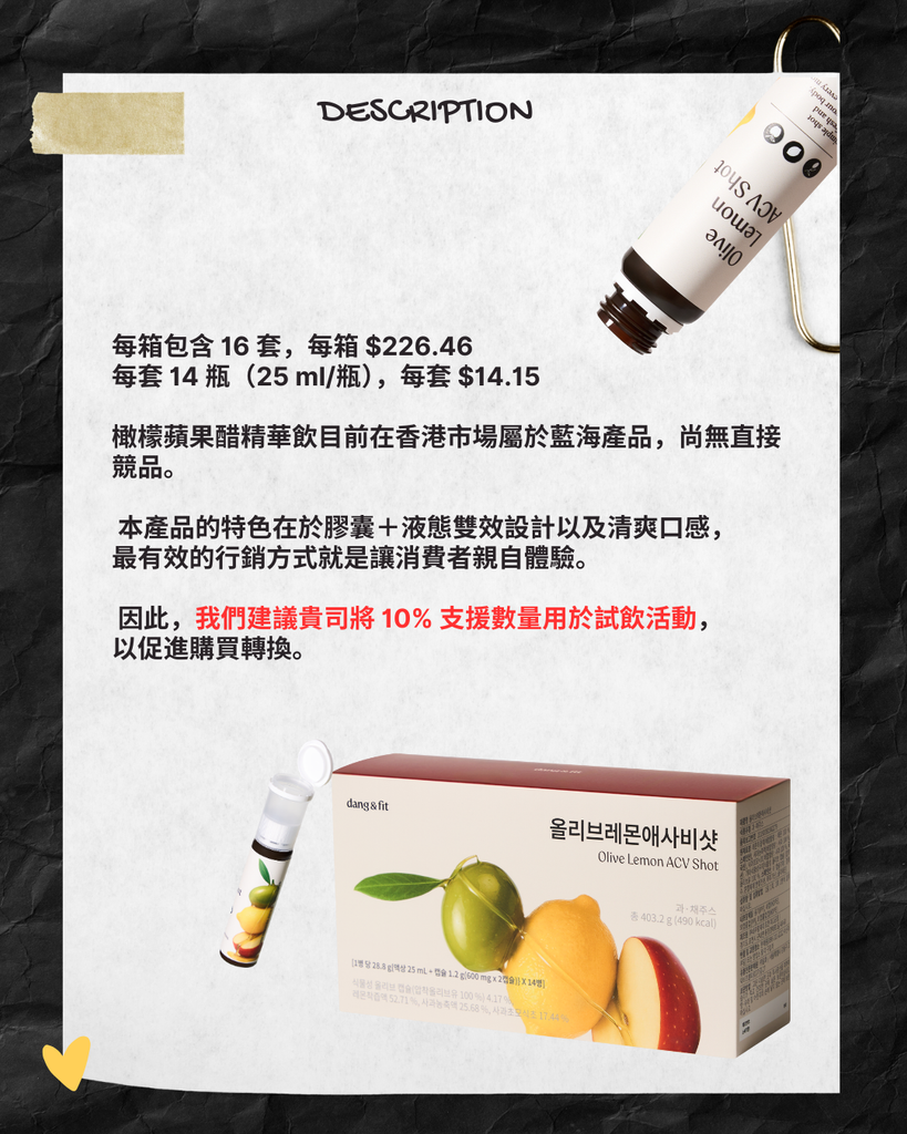 ・風味上檸檬x蘋果做清爽不刺激,比傳統醋飲更容易持續,適合首購與禮盒化。